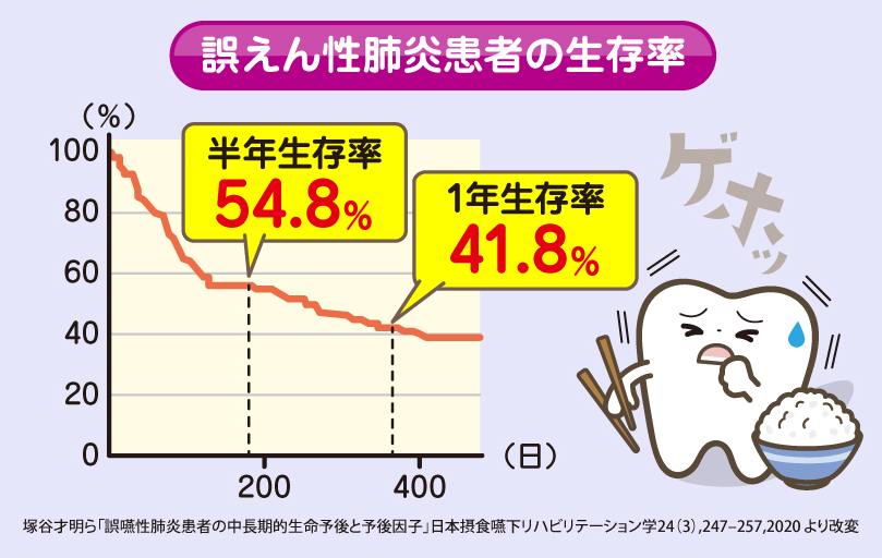 秋の味覚を楽しむ季節ですが、高齢者は誤えんから肺炎を起こしやすく注意が必要です。肺炎は死因の上位で、誤えん性肺炎は生存率も低く、風邪に似た症状で見分けが困難です。早期受診とともに、歯科医院での口腔ケアにより死亡率を減らせるため、セルフケアと定期受診が予防に重要です。
